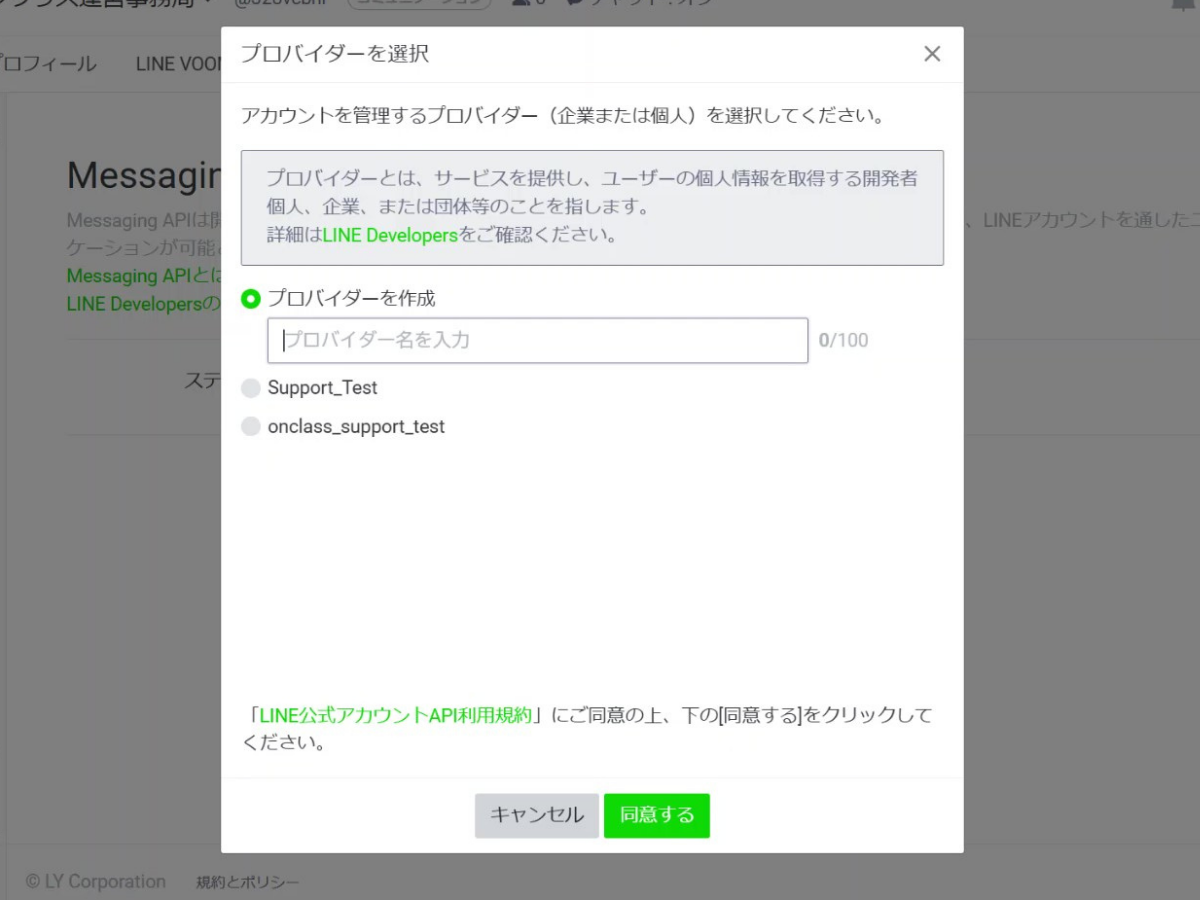 ・既に作成したプロバイダーがある場合はプロバイダー名が表示されます。表示されたプロバイダーからMessaging APIを利用するプロバイダーを選択してください。