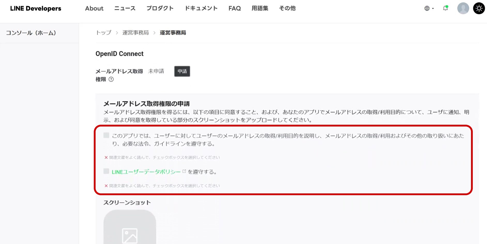 ステップ3-1:LINE Developersコンソールでのメールアドレス取得権限の申請