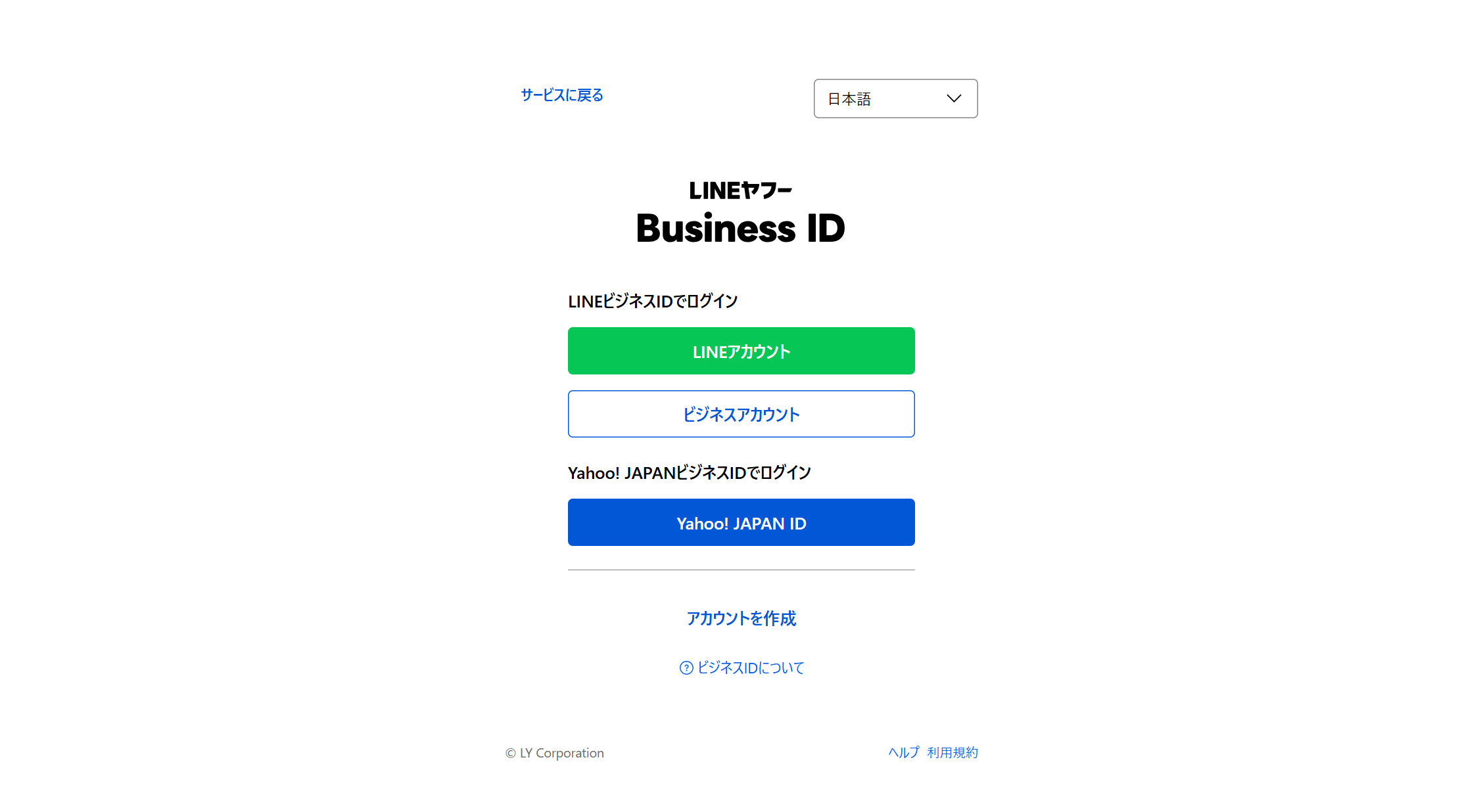 - LINE公式アカウント作成時に使用したLINEアカウントまたはビジネスアカウントでログインします。