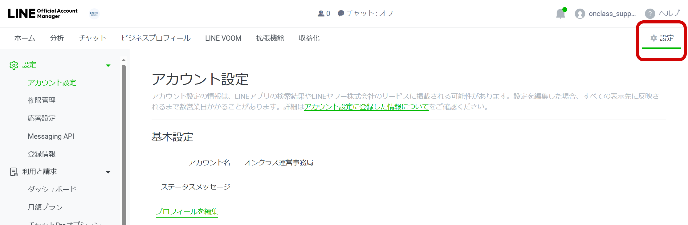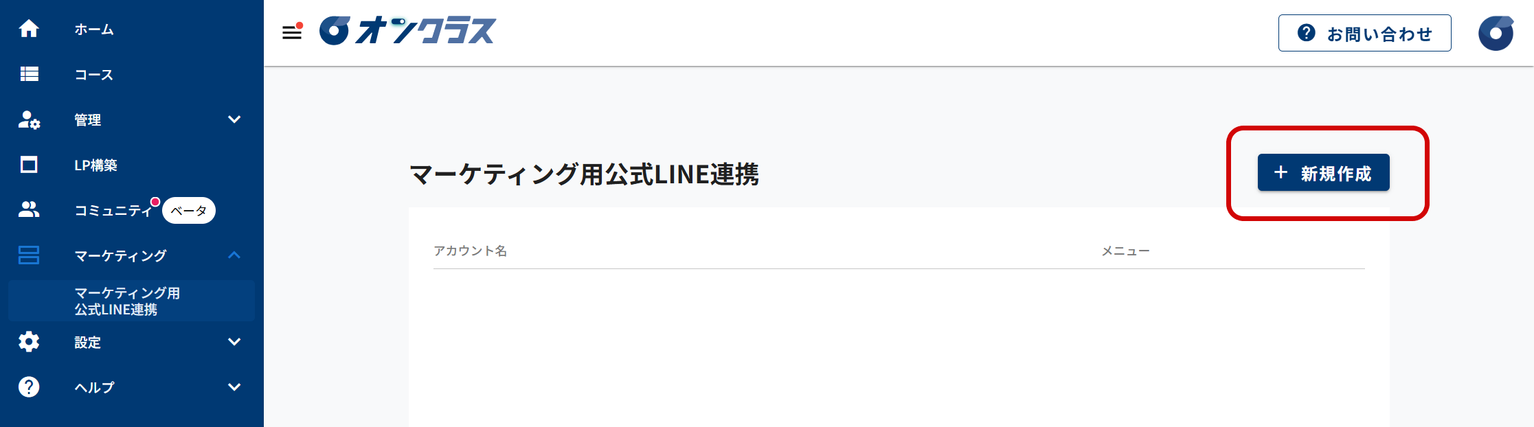 すでにLINE公式アカウントをお持ちの場合は、以下の「LINE公式アカウントとオンクラスマーケティング機能の連携手順」に沿って設定してください。