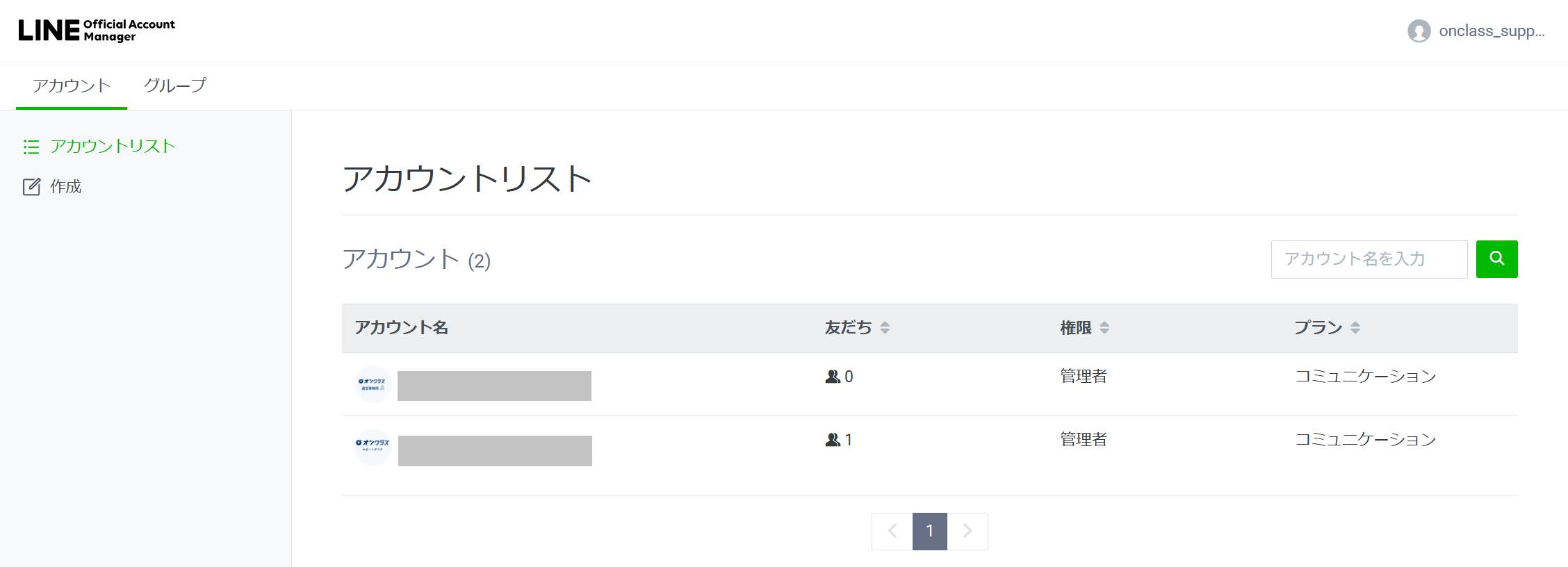 - アカウントリストから、オンクラスと連携させるアカウントを選択します。