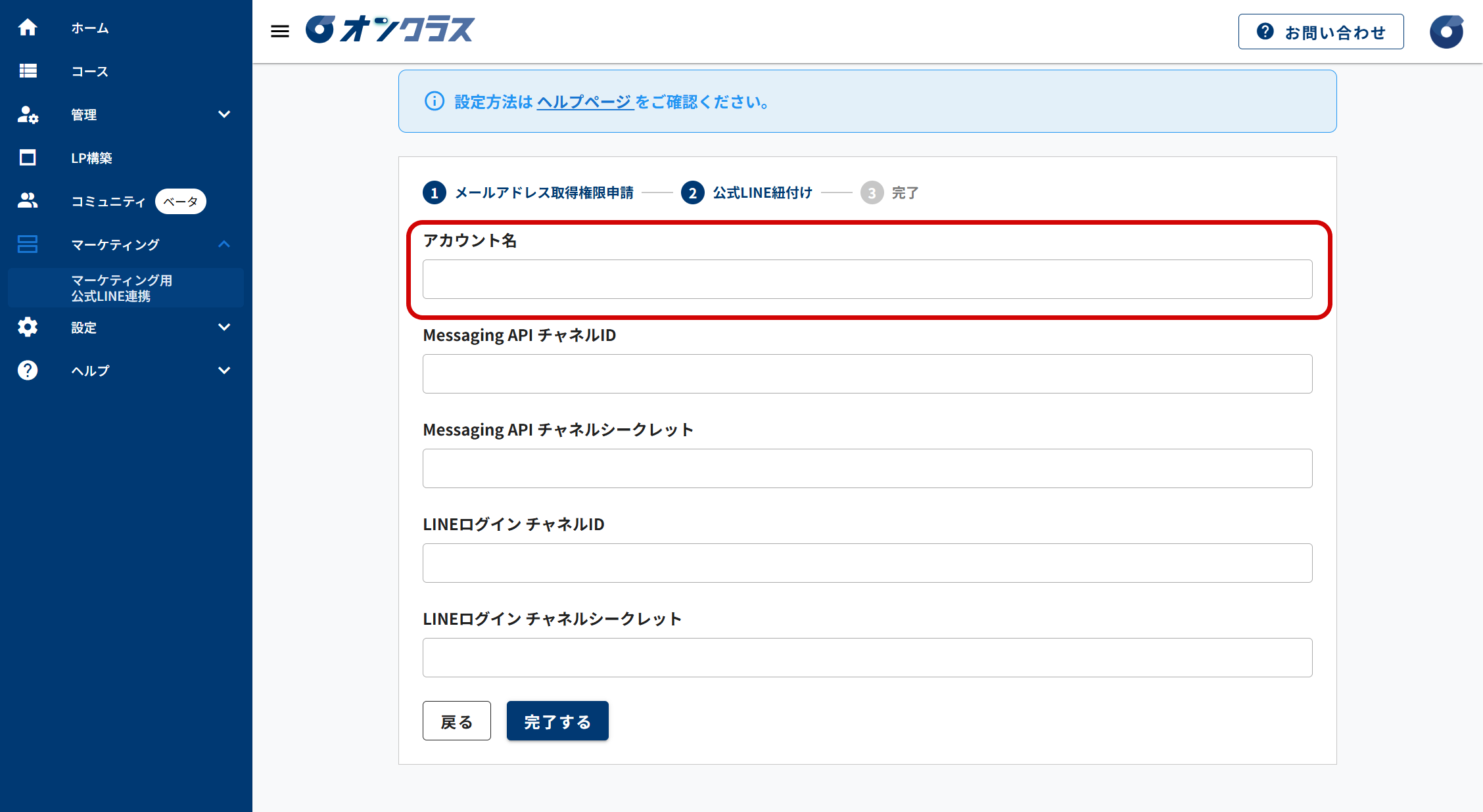 ステップ3-2:オンクラス管理画面へ「LINE Official Account Manager」の情報を入力