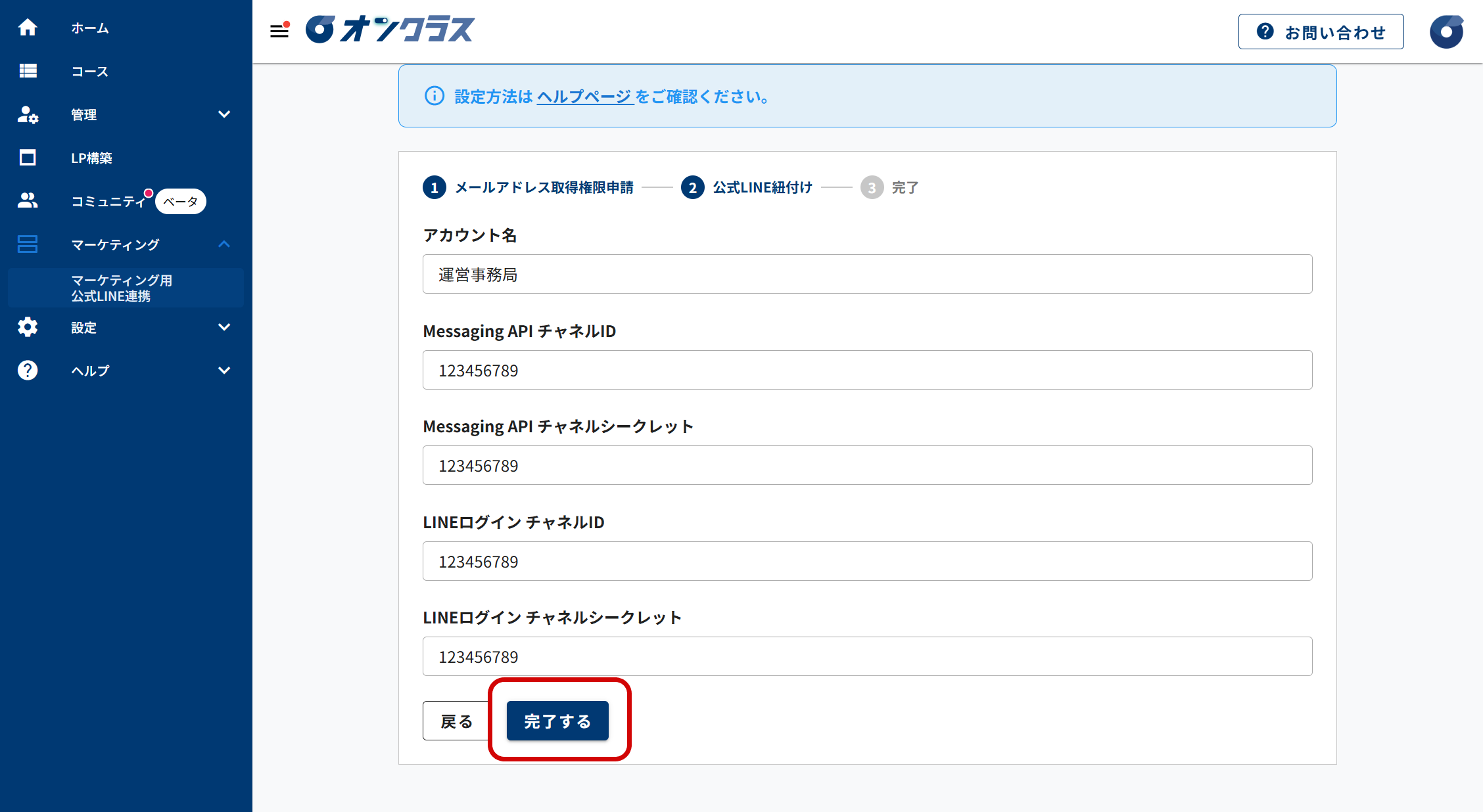 以上で公式LINEアカウントとオンクラスの連携設定は完了です。
