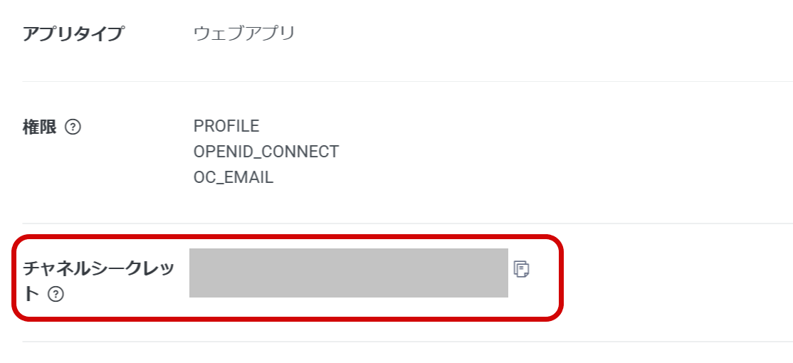 - 「LINE Developersコンソール」の画面に戻り、LINEログインチャネルの「チャネル基本設定」に表示されている、「チャネルシークレット」をコピーした後、オンクラスの管理画面の「LINEログイン チャネルシークレット」の欄へ貼り付けます。