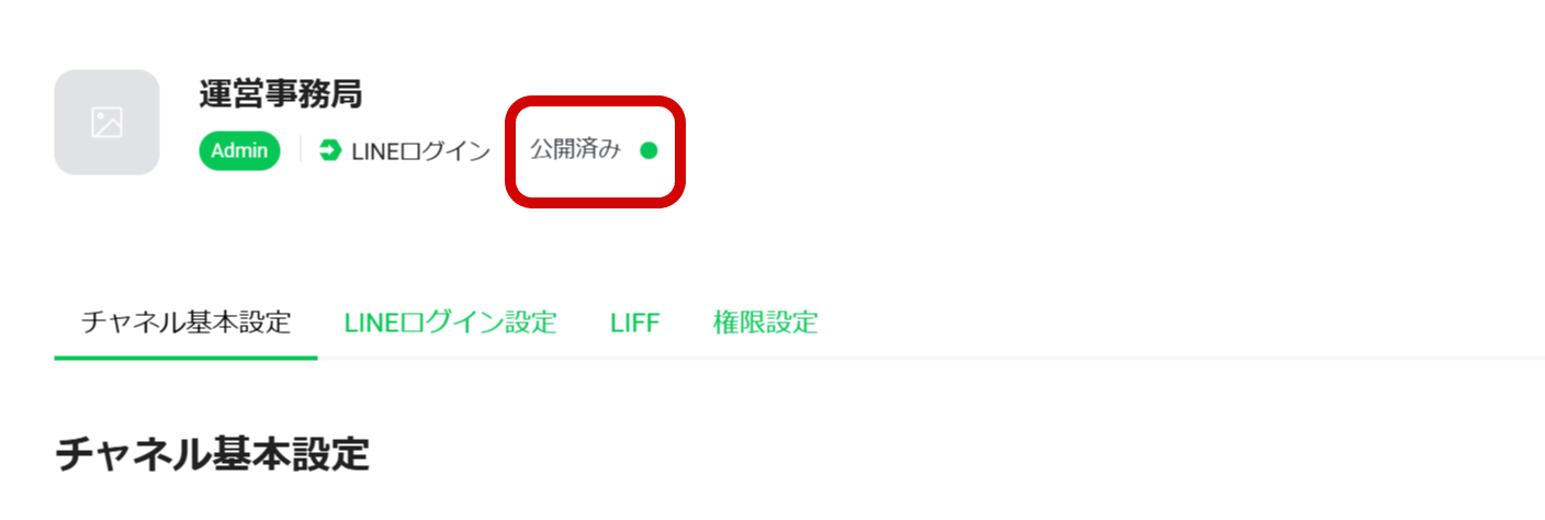 - チャネル名の下にあるステータスが「公開済み」と表示されていることを確認します。