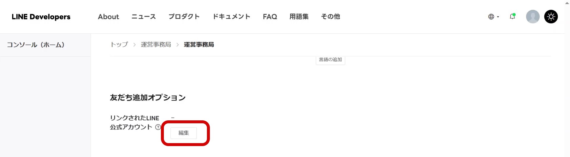 - チャネル基本設定タブの、「リンクされたLINE公式アカウント」という項目にある「編集」をクリックします。