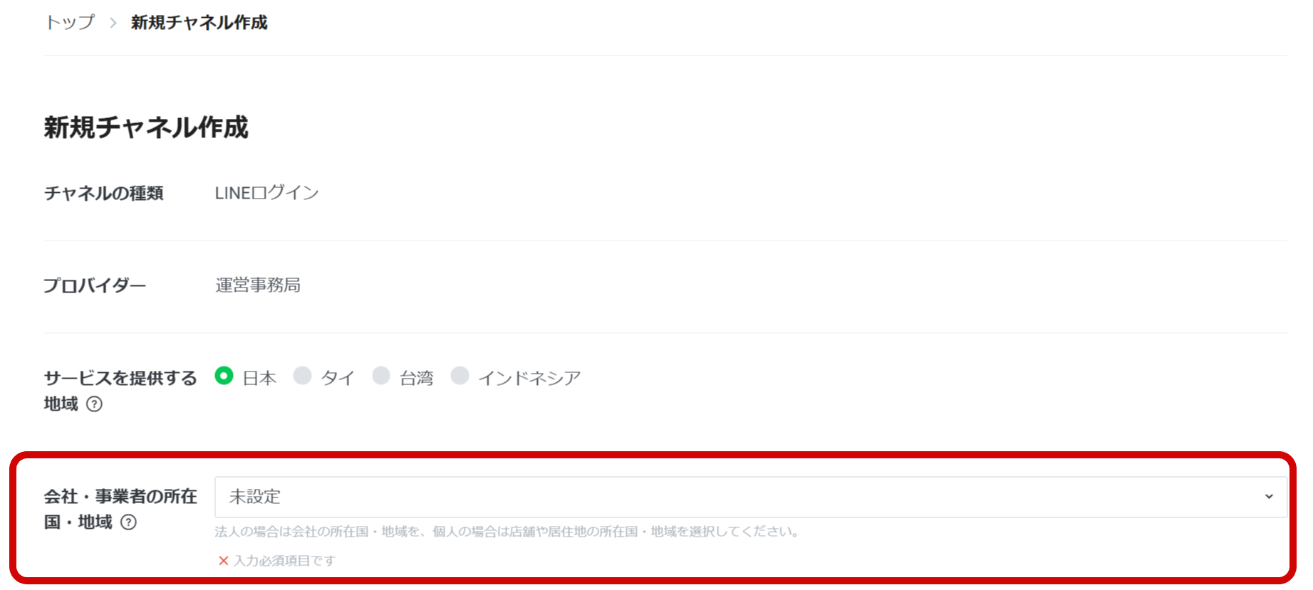・会社・事業者の所在国・地域は、「日本」を選択します。