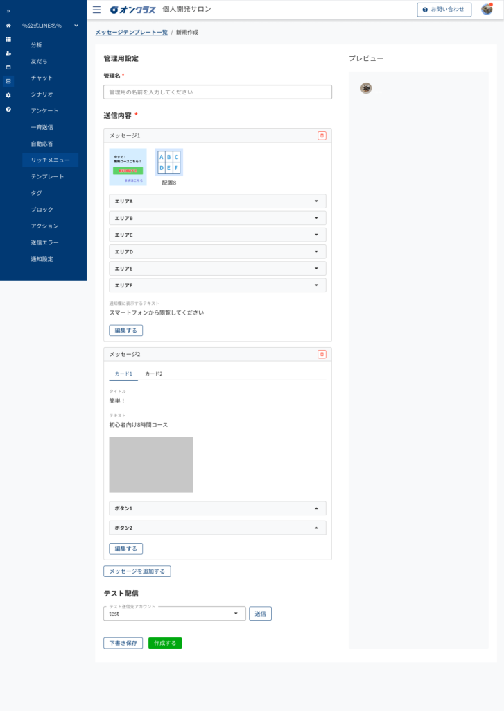 オンクラスシステムのメッセージテンプレート機能は、LINE友だちに送信するメッセージを事前に作成・管理できる機能です。テンプレートを作成することで、効率的にメッセージを配信できます。