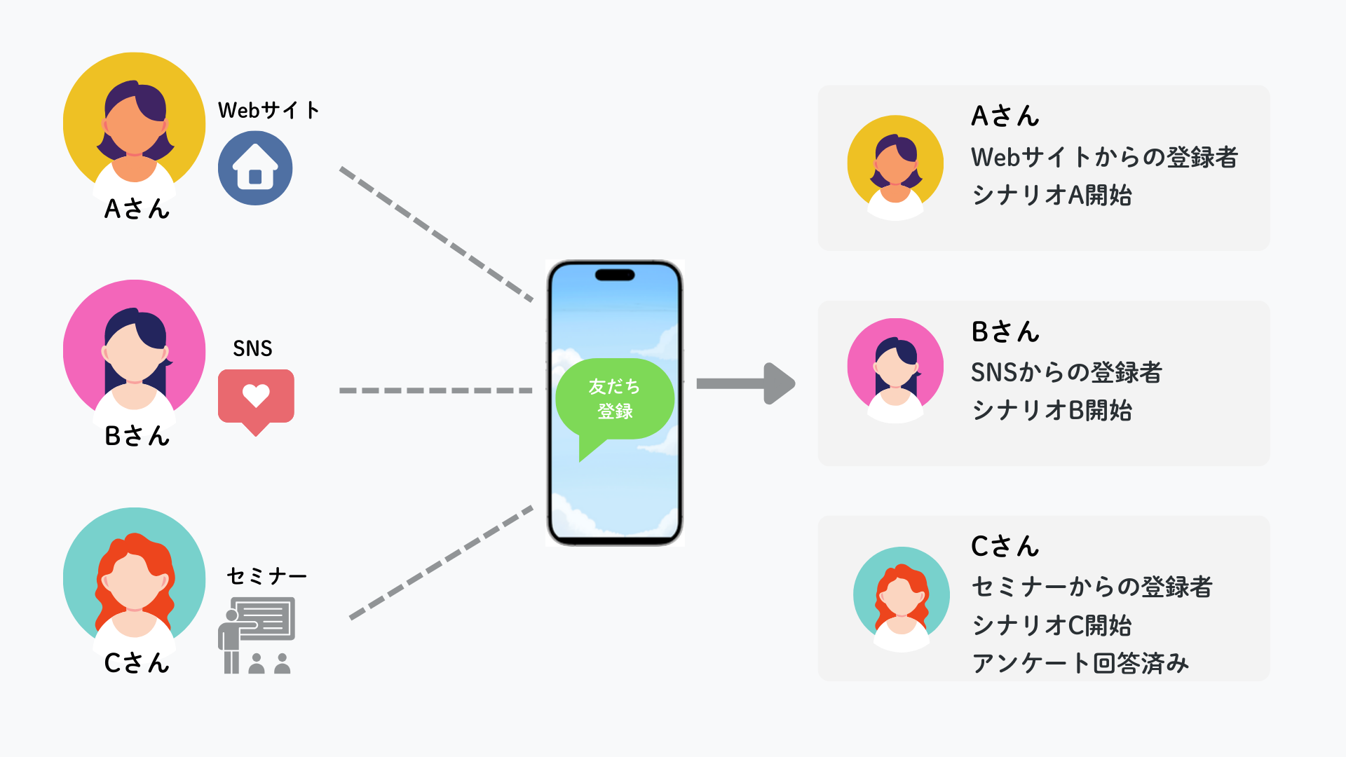 流入経路を設定すると、どの経路でLINE公式アカウントが友だち登録されたか特定することができます。また、流入経路に対応したメッセージを配信したり、タグを付与したりすることができます。